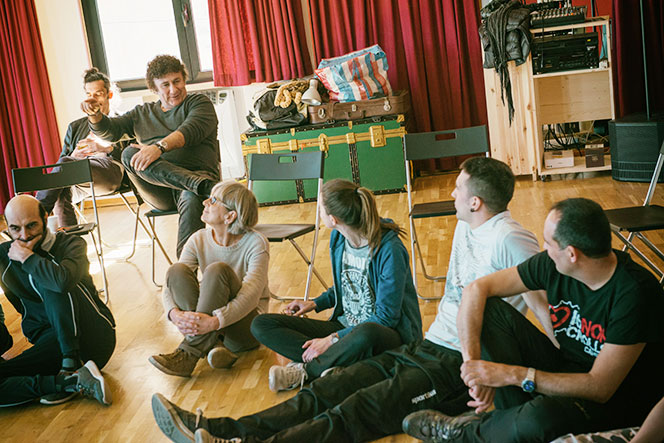 Come già successo in diverse precedenti occasioni, lo scorso 24 ottobre i Black Blues Brothers hanno tenuto un workshop acrobatico prima del loro show serale al Teatro Mancinelli di Orvieto. Un appuntamento in cui i cinque acrobati africani insegnano le tecniche di base della loro arte ai partecipanti, in momenti coinvolgenti carichi di divertimento.