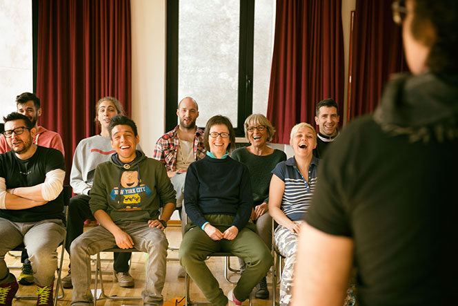 Il laboratorio è rivolto a ragazzi e adulti (l’età minima per partecipare è 15 anni) ed è destinato sia a professionisti del settore che vogliono approfondire l’espressione corporea o affinare le proprie tecniche, sia ad appassionati e amatori dell’arte teatrale, mimica e comica.